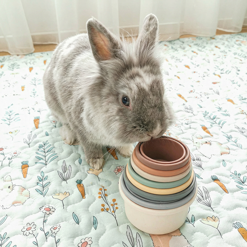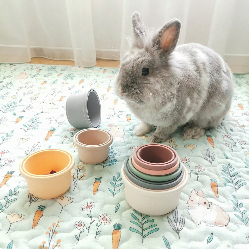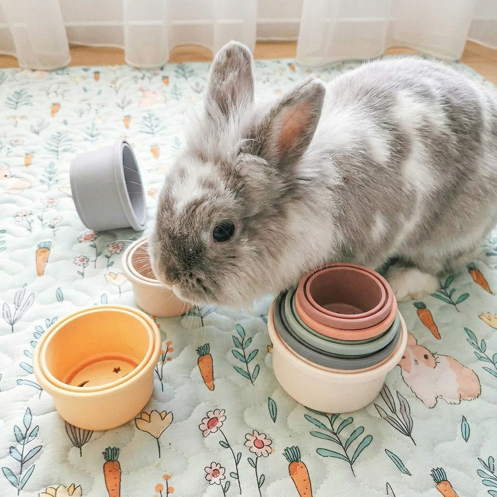 Ce Jeu pour lapin BunnyCups est un super jouet pour divertir votre lapinou. Les lapins adorent jouer, chercher et renifler des choses, ce jeu pour lapin Stacking cups est parfait pour lui. Il est important de stimuler les sens de votre lapin nain afin de préserver sa santé mentale. Le jeu permet à votre animal de développer ses sens et également son intelligence. Un lapin nain bien dans sa tête est un lapin heureux !