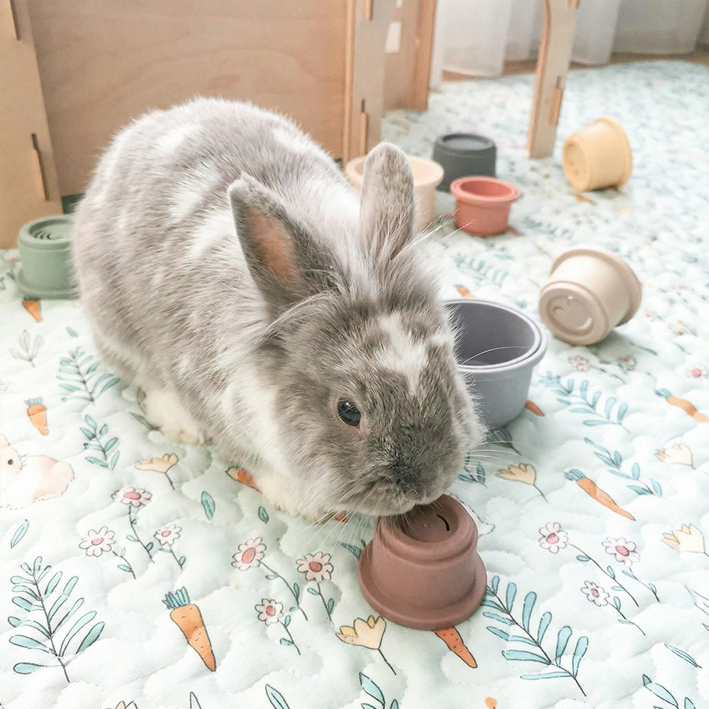 Le Jeu pour lapin BunnyCups est un jeu de fouille basé sur le même principe que le tapis de fouille lapin. C’est une activité ludique mais aussi sportive pour votre lapinou car 10 min de jeu suffisent pour le maintenir en bonne santé.